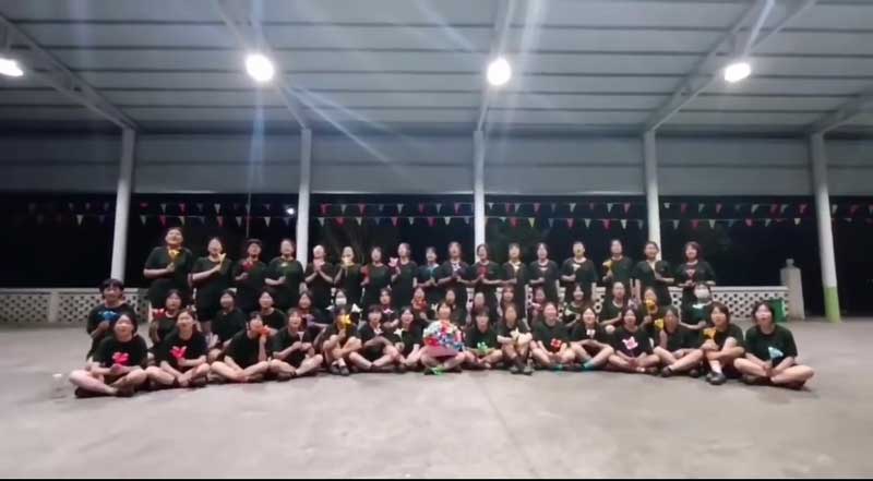 晚上,一群小孩在房间内训练场地,手棒花,同声讲到:“祝妈妈母亲节开心,您辛苦了,我爱您!”